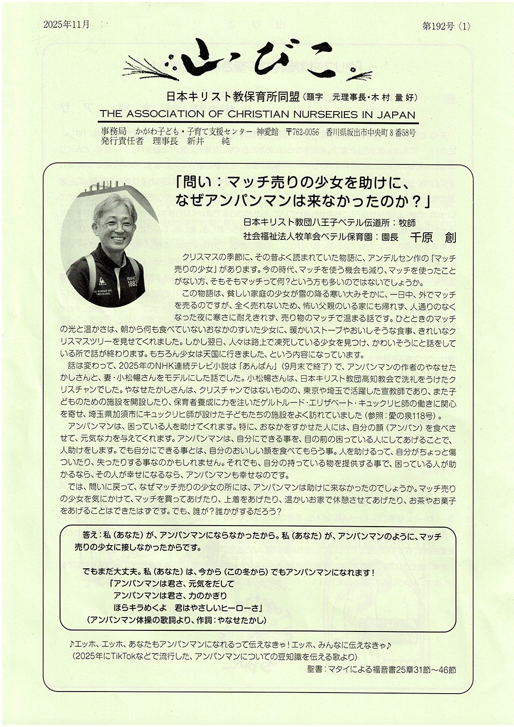 【山びこ】2025年12月 第192号 2025 12/05 機関紙 2025年12月5日 目次山びこ 2025年12月 第192号 表紙 表紙のみ拡大してご覧いただけます。 機関紙 2025 【山びこ】2025年9月 第191号 関連記事 【山びこ】2025年9月 第191号 2025年9月27日 【山びこ】2025年6月 第190号 2025年6月10日 【山びこ】2025年3月 第189号 2025年3月5日 【山びこ】2024年12月 第188号 2024年12月5日 【山びこ】2024年9月 第187号 2024年9月5日 【山びこ】2024年6月 第186号 2024年6月5日 【山びこ】2024年3月 第185号 2024年3月5日